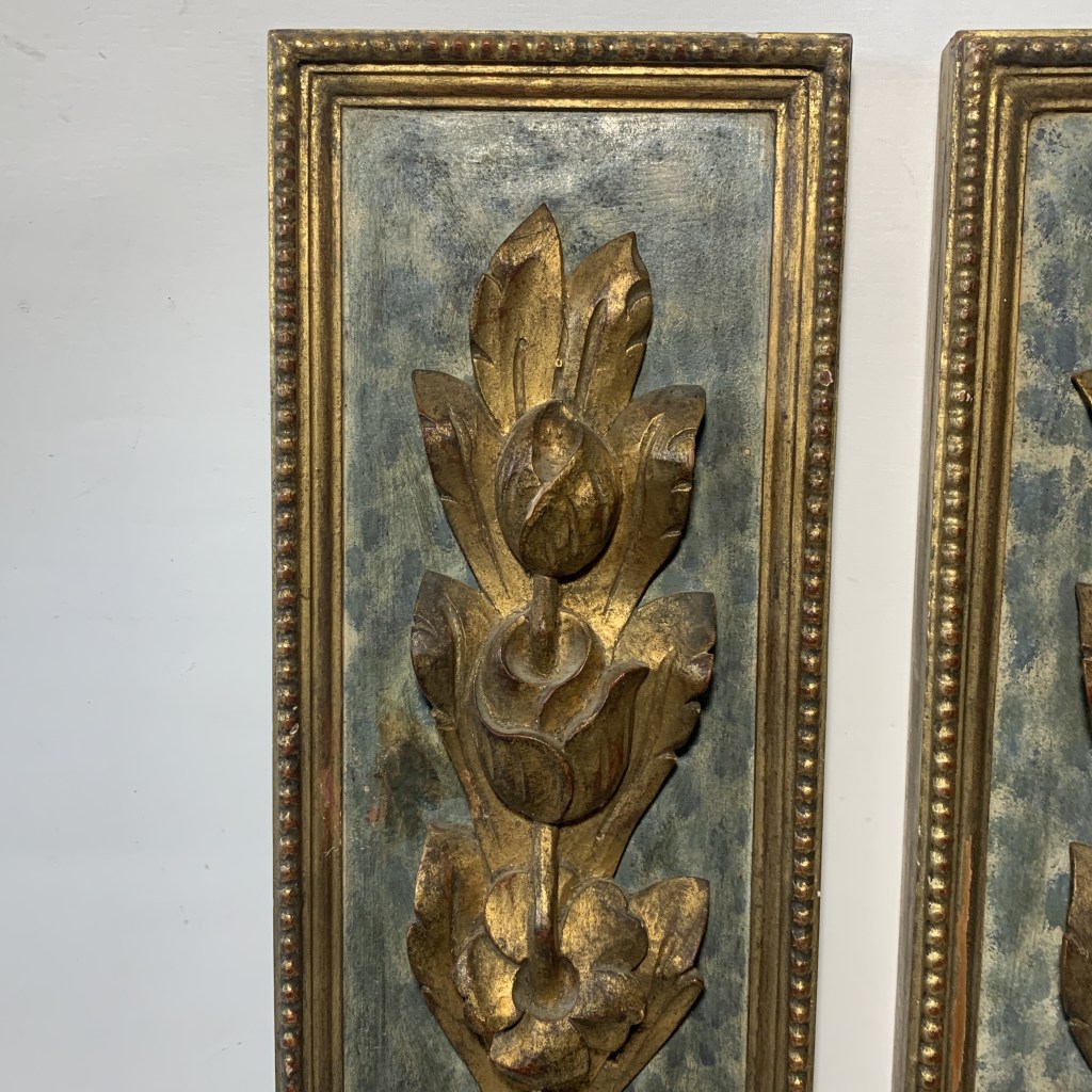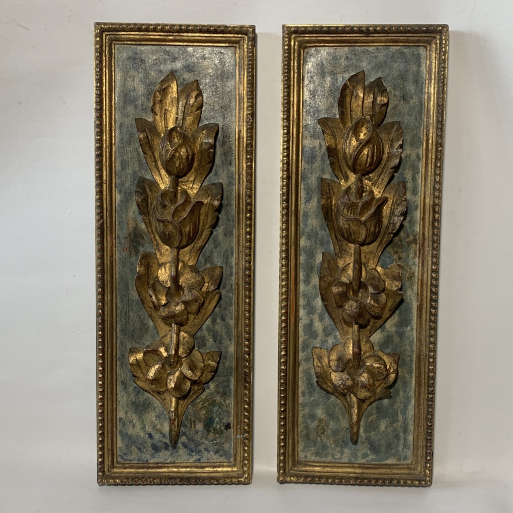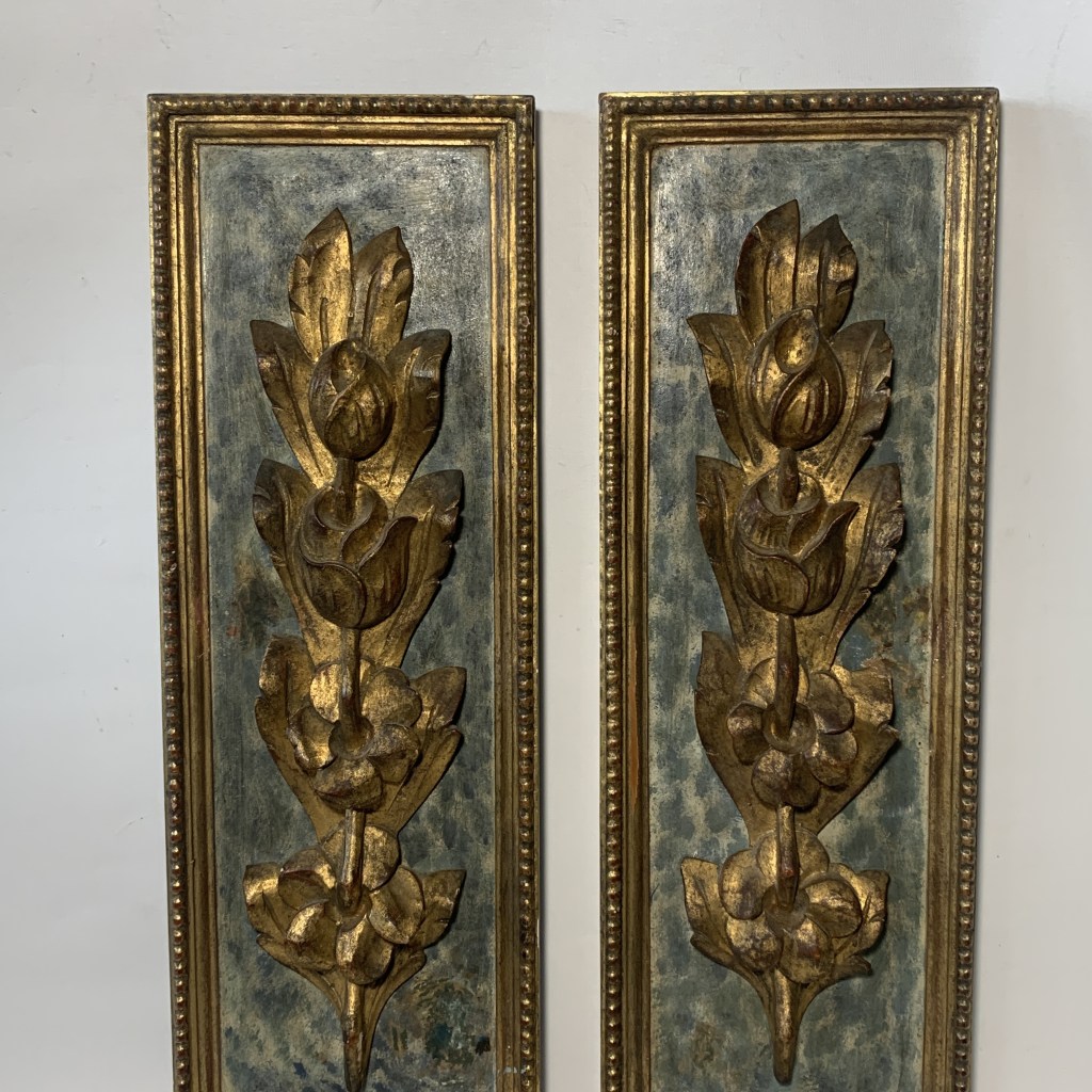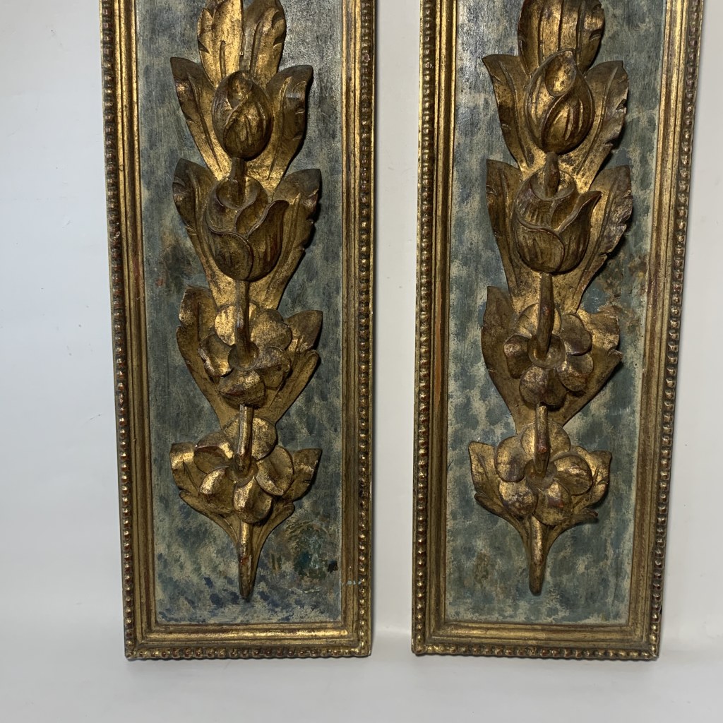 em madeira dourada e entalhada com flores, volutas e folhagens.