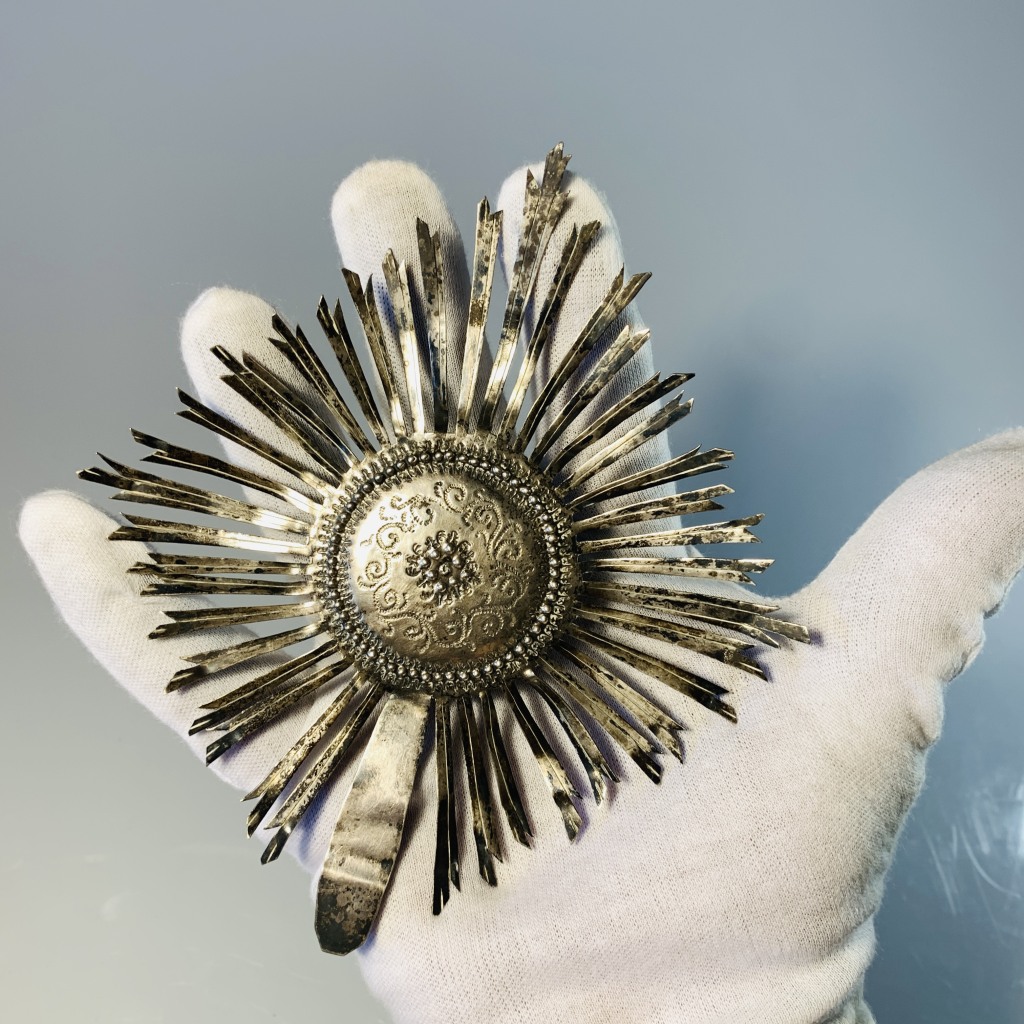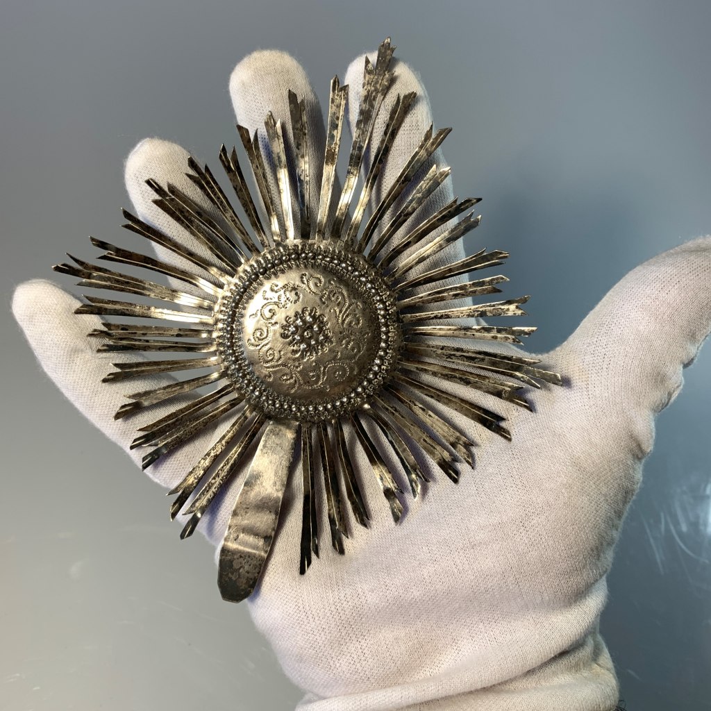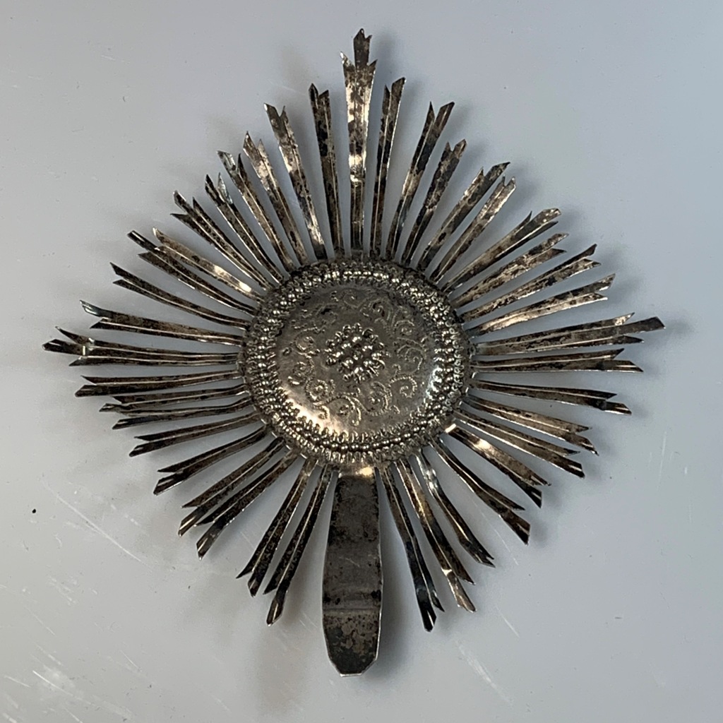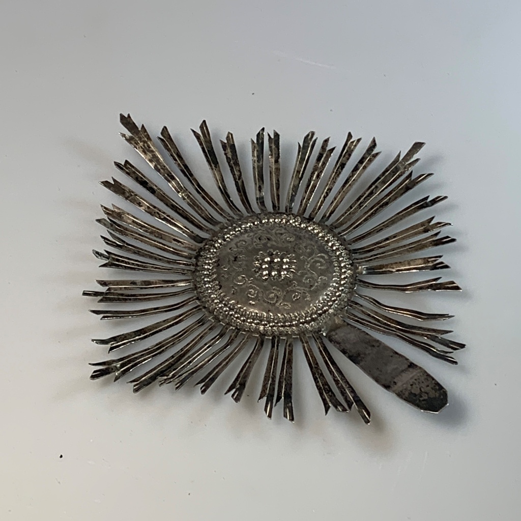 em prata portuguesa, séc XVIII/XIX, sem marcas portuguesas, ao abrigo do Decreto-Lei nº 120/2017, de 15 de Setembro - art. 2, nº 2, alínea c); Dim.: 16 cm x 14,5 cm ; Peso : 36gr.