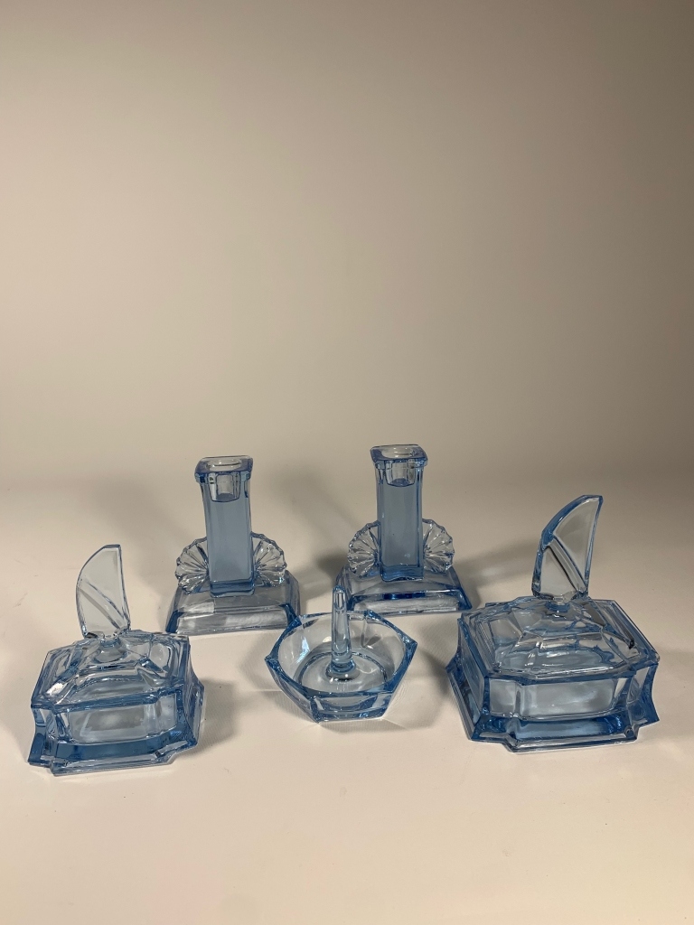 com duas caixas, um suporte para anéis, dois castiçais, com desgaste,Medidas: 13,5cm de altura x 10,5cm x 8,5cm (a maior)
