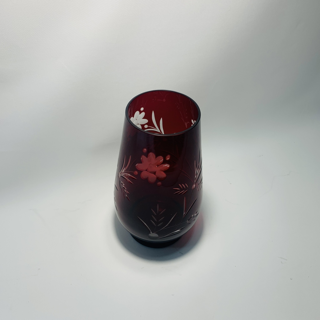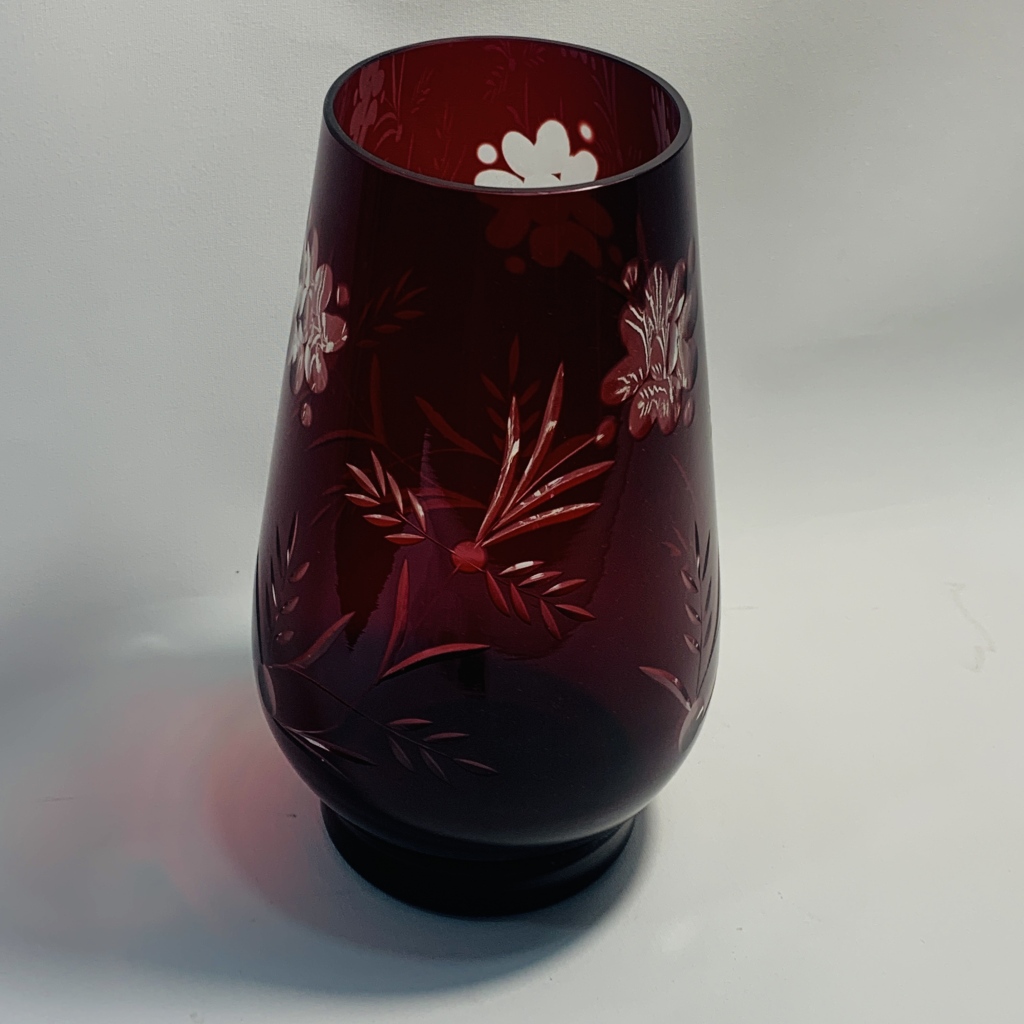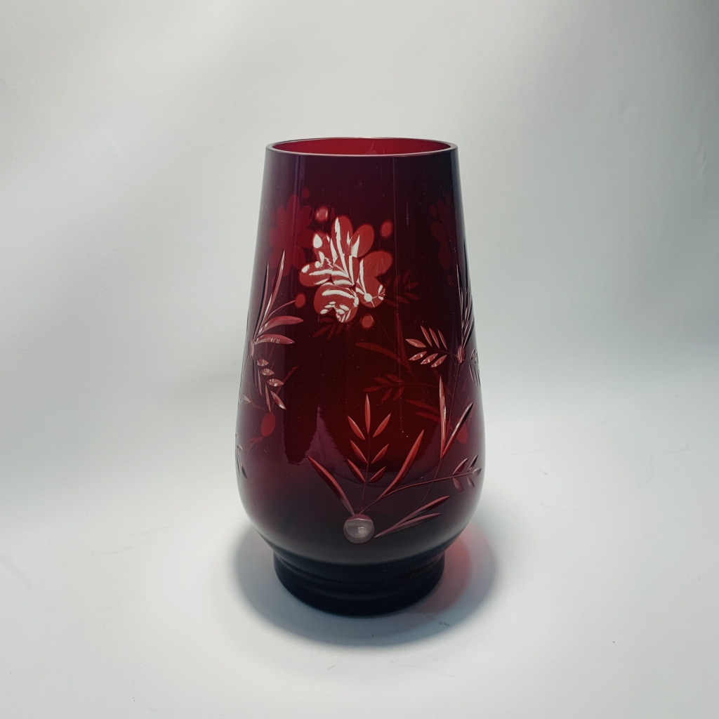 em cristal,bicolor,moldada , lapidada, com decoração floral, Séc XX, Boémea,Medidas: 25,5cm de altura x 9,5cm de diâmetro