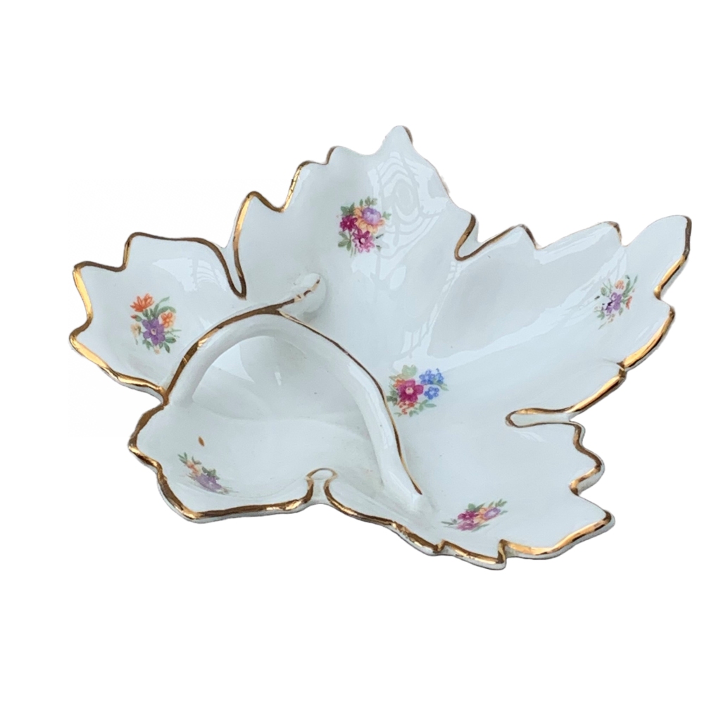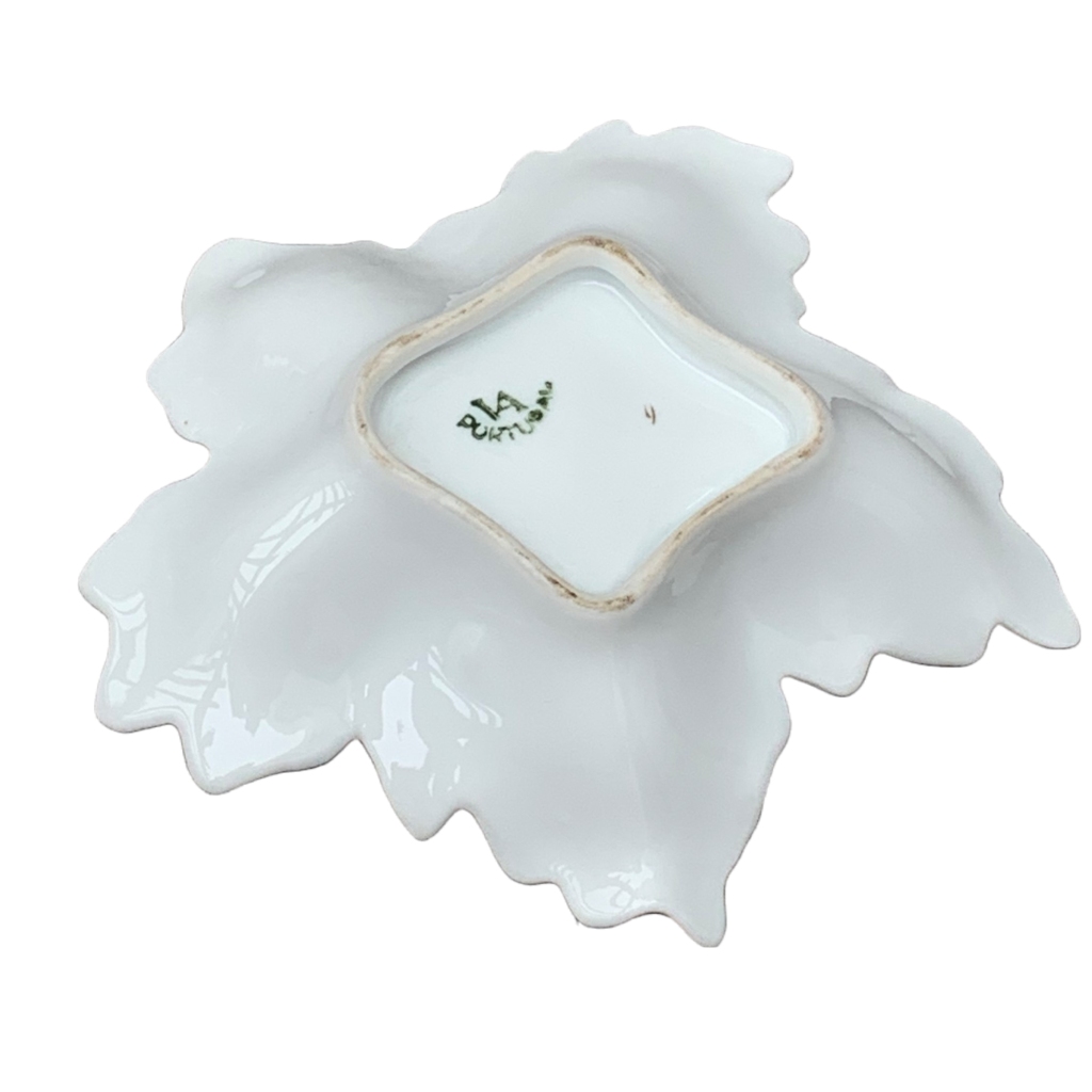 em porcelana, decroação "Flores" , marcada com a marca da Vista Alegre utilizada entre 1947-1968, em bom estado de conservação - Dim.: 13,5 cm x 12 cm