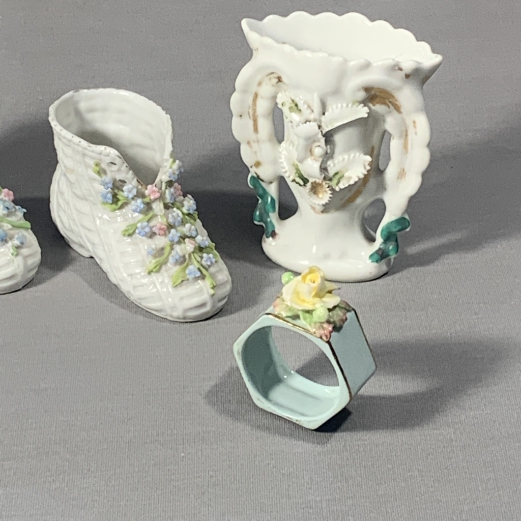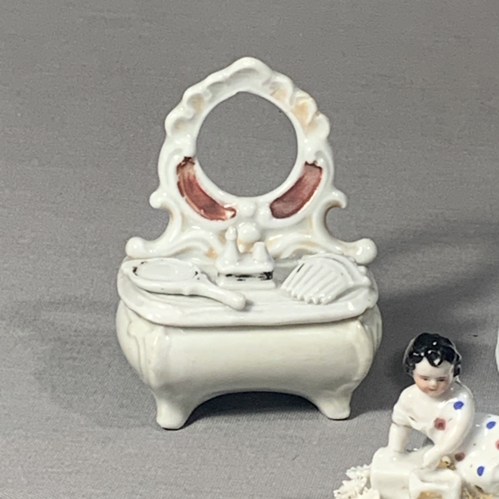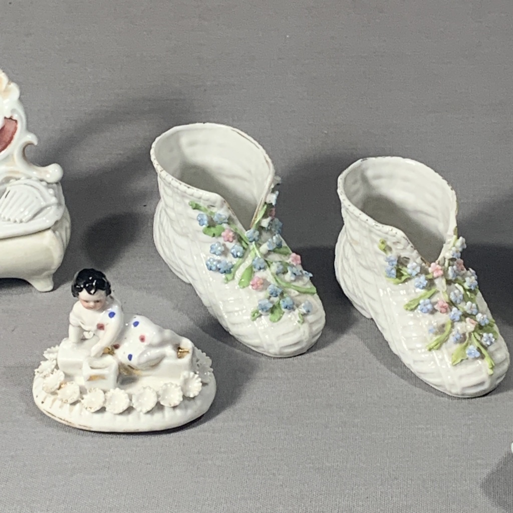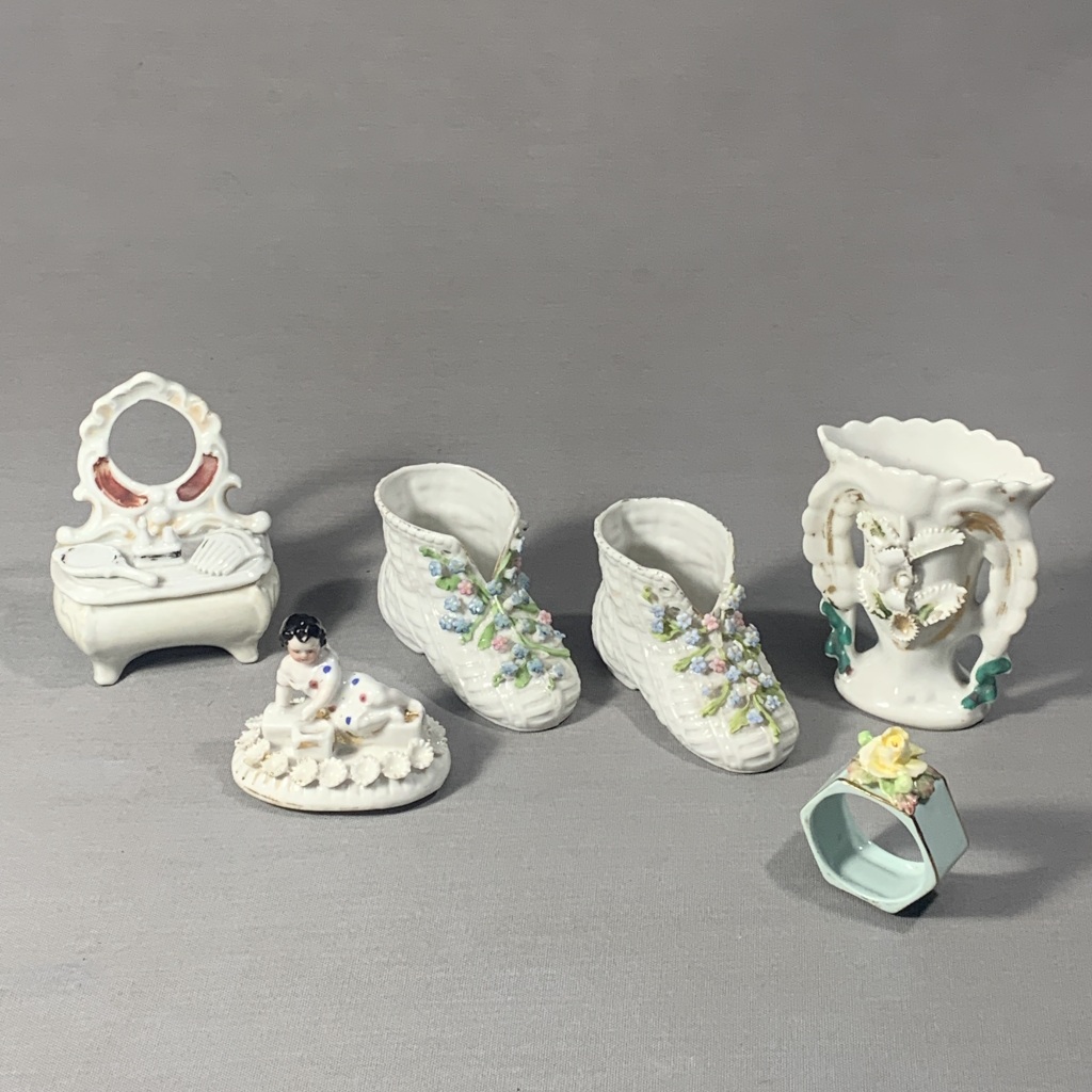 composto por 6 peças em porcelana, com pequenas falhas e desgaste. Dim.: 8,5 cm x 7 cm ( a maior)