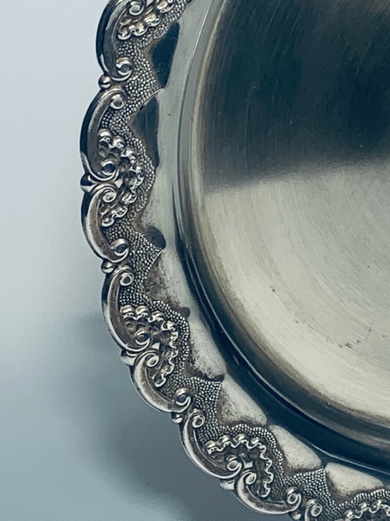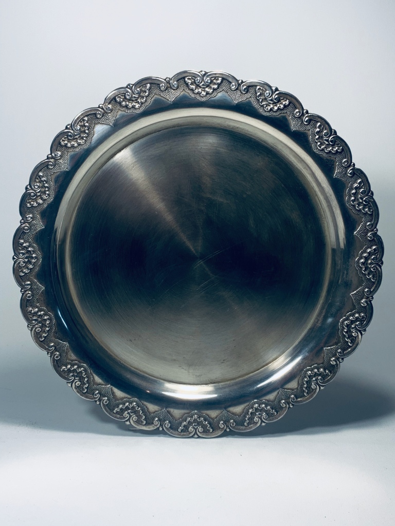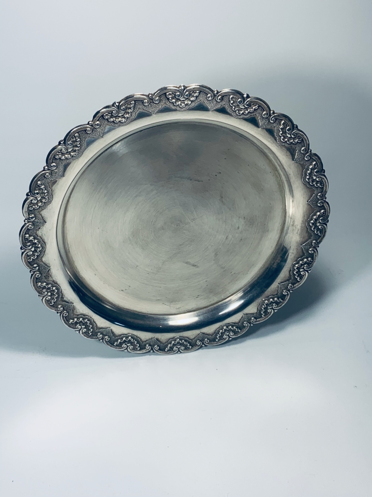 em prata portuguesa, 835/1000, decoração relevada, contraste do Porto,Diâmetro: 30cm