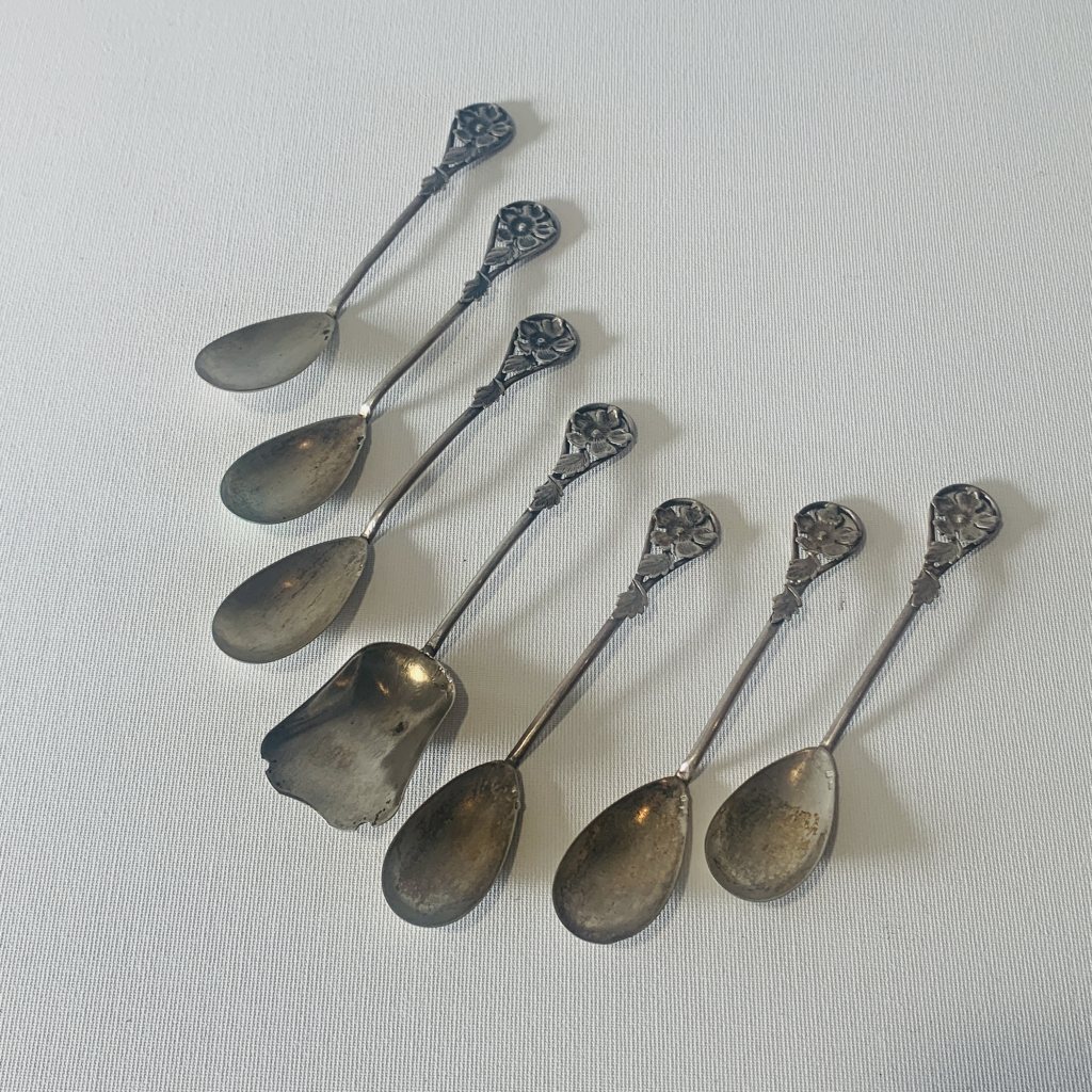 em prata, de café + 1 colher de açucar,decoração " Flores" com desgaste, contrastadas Javali do Porto 833/1000, início séc. XXMedidas: 11cm Peso: 46,7g